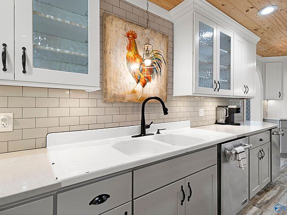 Welcome to your own private oasis just 15 minutes from Decatur &45 minutes to Huntsville/Redstone Arsenal. Nestled on approximately 3 partially fenced acres and backing up to serene woods, this beautifully renovated traditional home is packed with charm, functionality, & appeal. Step into a thoughtfully updated 3-bedroom, 2-bath home featuring 2,593 square feet of living space. Renovated in 2019, the heart of the home is a chef-curated kitchen, with hand-selected appliances perfect for entertaining or everyday gourmet living. Step outside and enjoy: A rustic party barn with rough-hewn lumber, metal roof, large fireplace; 3 bay garage/workshop, wooden barn w/ gated paddock, & guest cottage.