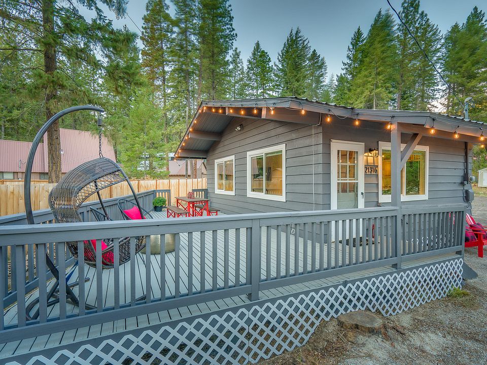 Pint-Sized AND Perfect in the Ponderosa: Discover this entirely reimagined cabin set on a beautiful/level lot on a quiet dead end street just a few paces from the community club house, swimming pool, river access and play ground. Makeover highlights: Fresh interior and exterior paint, new windows, easy-care laminate flooring, a sparkling new bathroom, new mini-split for heat/air, new butcher block counters and stainless appliances. Enjoy outdoor entertaining on the generous, freshly painted deck or tinker in the 12 x 24 shop complete with 220 amp service & reinforced flooring. An installed four bedroom septic provides the option of building a larger cabin now or in the future. Property backs a green belt for added privacy and elbow room. Simply...pint-sized perfection in the Ponderosa!