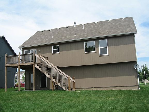 Finished lower level, 2 direct vent fireplaces (3 sided upstairs), hardwood floors in kitchen, all appliances including microwave and refrigerator, 2 garage door openers, kitchen island, built-in bookcases and t.v. cabinet, separate tub in master bath. Neighborhood swimming pool and park. Tenant responsible for mowing grass and snow removal. Small dogs allowed, but pet rent and deposit required.