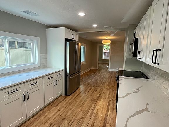 Kitchen includes a new electric range, stainless steel fridge/freezer, dishwasher, and plenty of cabinet space.