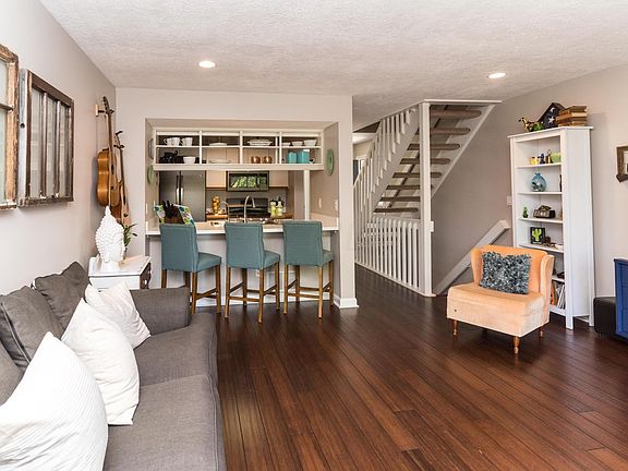 Such a value! Ideal location w incredible amenities! Make this incredible condo home. Updates throughout. Stunning new flooring. Kitchen overlooks the great room w more than enough room to relax! Beautiful, private patio backs to neighborhood green space., with plenty of room to grill and entertain. Crisp, clean and updated full bathroom. 2 large bedrooms w plenty of closet space & newer carpet & light fixtures. Finished full basement w new floors & the option to make it whatever you desire. Art studio? Workout space? 3rd bedroom? Large 1 car garage w all the bells & whistles for a dream work space. This condo is easy living at its best. Amenites include clubhouse, fitness facility & pool! Close to interstates & walking distance to many great restaurants and shopping! Welcome home!