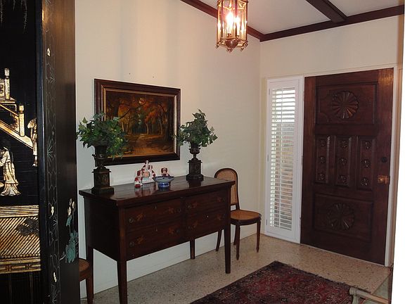 Gated Garden Park. Formal living area has vaulted and beamed ceiling with fireplace. Large kitchen with island and coffee bar. Master bedroom enlarged with full bath. 2nd bedroom has large closet. Nice patio with storage.
