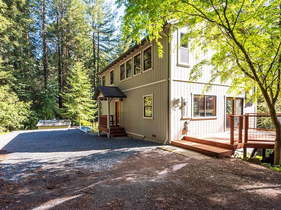 This enchanted Sebastopol gem enjoys sunshine throughout the redwoods, high above the historic Sturgeon's Mill. 1.67 sprawling acres provide your very own peaceful retreat. As you step inside, you will be wowed by the high-end finishes throughout. Completely remodeled, the 3 bedroom, 3 full bathroom home features a large gourmet kitchen with farm sink, wine refrigerator, and indoor laundry. Extensive upgrades made in the last 2 years include hardwood floors, carpets, cabinets, quartz countertops, tile work in bathrooms, hardware and fixtures, interior and exterior paint, and so much more. Outside, a spacious detached shed is perfect for an art studio, workout/yoga space, shop, or office...the choice is yours! The brand new redwood decks are an entertainer's dream: just imagine hosting get-togethers or unwinding with a quiet alfresco dinner under the stars. Whether you're looking for a full-time escape or a peaceful spot for weekend getaways, this sanctuary ticks all the boxes. Just minutes away from the charm of both downtown Graton and Sebastopol. Move-in ready and still eligible for standard property insurance (no need for the costly California Fair Plan)!