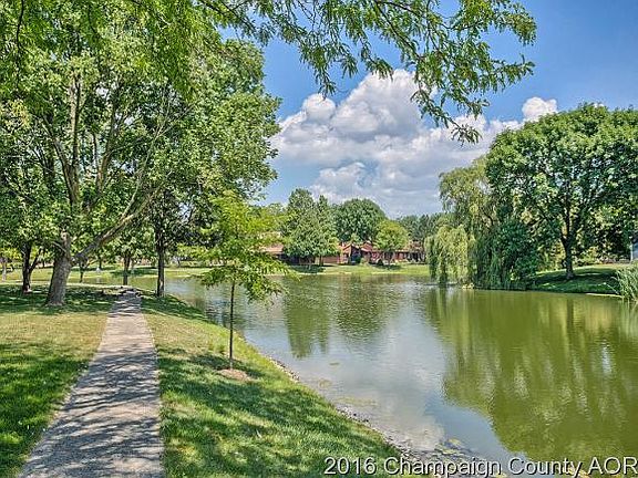 One block from the bus stop, easy access to Parkland College or to the U of I, shopping etc. Condo w/ amazing lake views. Upstairs unit with a deck overlooking the water. 3 large bedrooms, one with a walk in closet and the master suite overlooks the lake. Contemporary kitchen, stunning tile floor, under cabinet lighting, extra storage cabinets and glass pocket doors that are gorgeous. Wood burning fireplace, which you could convert to gas if you want. The living room has lots of lighting and very roomy. The dining room could be used as a flex room, with lake views. AC/furnace and water heater were new in 2011, budget billing of $131, all appliances stay, dishwasher, washer and dryer were new in 2013.