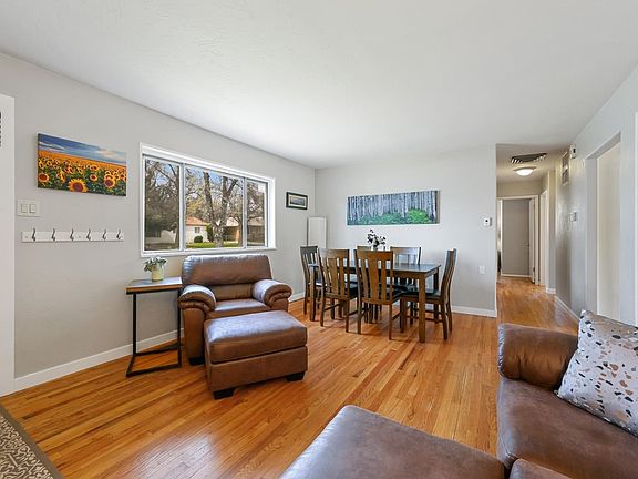 Welcome to this charming 3-bed, 1-bath home located in the heart of Grand Junction, CO. This beautiful property has been tastefully updated while still retaining some of its original charm, including the gorgeous hardwood floors that can be found throughout much of the home. Upon entering, you'll be greeted by a combination living and dining area with a large picture window that floods the room with natural light. The kitchen is bright and airy, featuring newer appliances and overlooking the large second living space, making it the perfect spot for entertaining. All three generously sized bedrooms offer plenty of space for your furniture, while the full bathroom has been nicely updated to meet all of your modern needs. Step outside to the spacious backyard and you'll find mature trees, a shed, and an open patio, providing the perfect place to relax and unwind after a long day. The carport comes complete with an additional storage room, and there is plenty of additional parking both behind the fence and at the back of the lot off the alley. Located close to Rocket Park, schools, shopping, dining, and Colorado Mesa University, this home is in an ideal location for anyone looking to settle down or invest in a property. Don't miss out on this fantastic opportunity to own in Western Colorado with all the modern amenities you need!