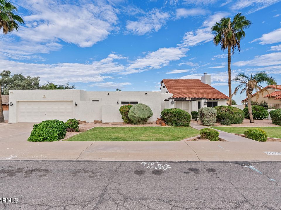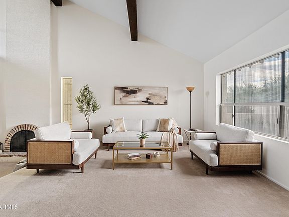 Nestled in a desirable non-HOA community, this charming home sits on a premium golf course lot offering stunning sunset views. Inside, you'll find vaulted ceilings, fresh interior and exterior paint, and brand-new carpet. The home exudes warmth and character, with an inviting layout perfect for relaxing or entertaining. Enjoy peaceful evenings in the beautiful backyard overlooking the fairway a serene setting to unwind and take in Arizona's sunsets. Move-in ready with timeless appeal and undeniable charm.