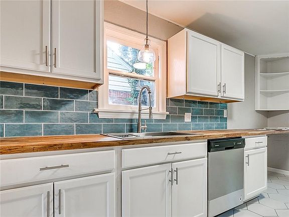 You'll find easy city living at this remodeled 2 bed, 1 bath midtown bungalow located in the Shepherd Historical District. Located around the corner from the best districts in OKC, this home offers a completely renovated kitchen with white hexagon flooring tile, white cabinets, butchers block countertops, and stainless steel appliances. Fresh neutral paint inside and out. Updated bathroom features new vanity, toilet, wainscoting, and silver fixtures. Inside laundry. One car garage.