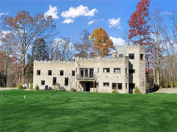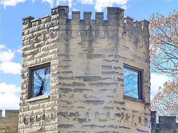 Make your fairytale come true with the captivating charm and palatial splendor of the Wellington Castle. Surrounded by an enchanting moat Circa 1981, the 4700 sf castle was built to replicate the Norman style of old England. This architecturally intriguing built-to-last stonekeep medieval manor is clad in resilient rock-faced limestone veneer complete with crenellated battlement walls originally designed for archers and artillery. Balcony overlooks 4 ½ mostly wooded acres with a private lake. Anchored by a floor to ceiling limestone fireplace, the great room commands attention as a parapet wall extends the length of the room exposing a staircase ascending to a library. Fully-equipped eat-in kitchen showcases abundant cabinetry, island and a stone arch accent wall. Sun-drenched dining room is sized for royalty and is adorned by a wall to wall, curved fireplace.The castle has undergone renovations including 40 new windows, 22 inside doors, 7 outside doors, garage doors, HVAC system, roof