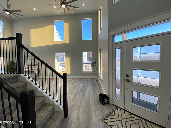 Saint Pierre 5 bedroom open concept floor plan, 2 family rooms, soaring ceilings in great room, kitchen w/large island, quartz counters, fridge & dbl. oven incl., master BR suite w/ soaking tub, dbl. shower, spacious 4 car garage, water softener, RV pad, ext. generator & RV plug ins. Private backyard w/trees. Large front & back Trex decks. Fast commute location to JBER-Anchorage.Elisha Custom Homes, LLC - Saint Pierre open concept floor plan, 2 family rooms, soaring ceilings in great room, kitchen w/large island, quartz counters, fridge & double ovens included., master bedroom suite w/ soaking tub & shower, spacious 4 car garage, RV pad, ext. generator & 50 amp RV plug ins. Private backyard w/trees. Fast commute location. Three open houses every week: Wednesdays from 1 to 4pm and Saturday and Sunday from noon to 4pm at View Pointe Pointe at the Ranch off of Trunk Road South. Great video - see pictures. Realtor host will physically be at 2132 S. Sanctuary Drive Lot 20 Block 1 at View Pointe at the Ranch. Three five bedroom homes are move in ready and available to tour. View home at the top of E. Gateway Drive with amazing views of the Knik Glacier Valley, State Game Refuge (Palmer Hay Flats), and Chugiak mountains. Come visit the newest View Point at the Ranch community. The Saint Pierre - Elisha Custom Homes, LLC open concept floor plan is the previous winner of the Mat-Su Home Owners Associations Fall Parade of Homes Golden Spike Award competition for: 1) Best Street Appeal 2) Best Kitchen 3) Best Workmanship Close to award winning S.T.E.M. Machetanz Elementary school. Two (2) family rooms Great room is two stories high with walls of extra tall windows to enjoy the views. Programable electric fire place that produces heat. One bedroom on the first floor Full first floor bathroom Four bedrooms upstairs with large master bath and shared full bathroom. Private back yard with mature trees. Kitchen w/large island, quartz counters, refrigerator, double ovens, under counter lighting and pantry. Also includes matching stainless steel farm sink, microwave and dishwasher. Walk in pantry with built in shelves. Master bed room suite with crown molding, ceiling fan and programable colored rope lighting. Master bathroom has soaking tub, shower, double vanity and a spacious walk in closet. Roomy large finished 4 car garage with two floor drains. Water softener included in the purchase price in addition to the unit heater, on demand water heater and home water filtration system. Fastest commute location to Joint Base Elmendorf Richardson, Eagle River and Anchorage from the Wasilla/Palmer area. Move in Ready. The View Pointe subdivision offers street lights, community well, bike trails, hiking trails to Swan Lake, nesting eagles and the sounds of all the birds including Eagles and the Sand Hill Cranes! Short commute by walking, biking or car to Machetanz Elementary School an award winning S.T.E.M. school. The home faces east towards the Chugach Mountains with views of the Knik Glacier Valley and State Game Refuge. If you like sun this home gets the sun all day long! The modified Saint Pierre floor plan provides large Alpine windows with excellent natural light to enjoy the spectacular views from the top of the subdivision. This custom home includes the following: Luxury waterproof vinyl flooring. Quartz countertops and some window sills near sinks & tubs Three (3) large ceiling fans Elegant two story entrance with a covered Trex deck. Extra large Trex deck in the backyard facing mature trees. Textured and painted 4 car garage interior with two floor drains with unit heater and water softener. Extra heavy duty garage doors Hand textured finish on walls and ceilings 45 degree drywall corners through out the home High quality Alpine double pane windows All closets have ceiling lights Five (5) star energy rating Upgraded high efficiency double stage furnace with on demand water heater Custom tiled showers (floors and walls) with upgraded wide drains and two shower heads in master bath. Exterior generator plug-in and 50amp RV plug on the south side of the home off the RV pad. If you like luxury and great workmanship this is the home for you! Need a larger custom home or garage? Come see Peter's 2,800 or 3,760 RES-SF custom floor plans with the six car garages with RV door! Many more view lots are available in all sized lots for the 2023 building season. Schedule a tour and a builders meeting today. Builders book is available upon request. Call for details.