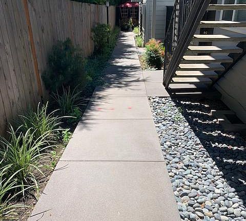 Quiet, remodeled 8 plex 2 bedroom townhouse with living and kitchen and patio downstairs, bedrooms upstairs. fresh paint, laminate floors, private patio, and dishwasher. Back unit south east facing affords privacy. 832 sf. Tiled shower. On the bike path/greenway, close to Col Sumner park. 2 separate buildings here with 4 units in each building. This unit is in the back of the rear building and is very private. Owner pays water/sewer, garbage and landscaping. NO smoking property. Cats ok. 1 only. 1 off street parking space included along with a 4 foot by 4 foot storage unit. Coin op washer and dryer on site. Application fee per person is $47.50. Co signers are less.