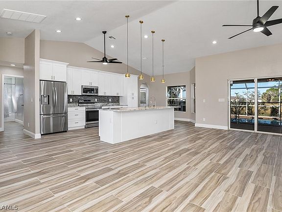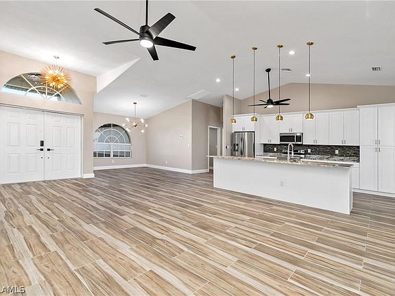 Welcome to this COMPLETELY REMODELED 4-bedroom 3 FULL bath POOL home. With modern touches throughout including updated lighting, fans, fixtures and mirrors. This homes kitchen features granite countertops, a large island with sink and NEW high-end appliances. The master bath has a walk-in shower, dual vanity sinks and a standalone modern soaking tub. Wood plank TILE covers the entire home. The secondary baths have beautiful new shower surrounds and large updated vanities. The pool/patio area has a generous under truss area and is completely screened in, perfect for your outdoor gatherings. Large electric heated pool and beautiful new landscaping with curbing. Conveniently located in the heart of Cape Coral. This spacious home has ASSESMENTS PAID a brand-new ROOF, new landscaping, new paint. Don't miss this incredible opportunity to own your piece of paradise!
