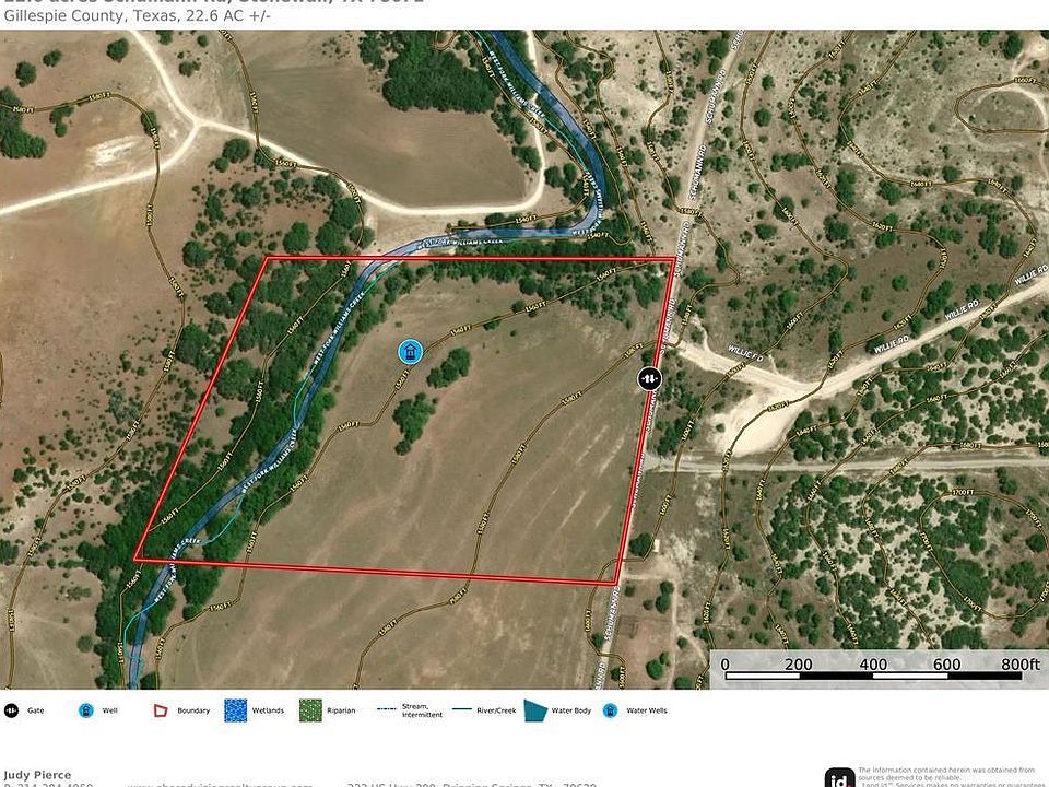 VIEW, CREEK, WELL, NEW PRICE and 22.66 Acres Near Historic Albert Ice House and Dancehall. Discover a stunning property with 1000+ feet of frontage on the West Fork Williams Creek. Located on Schumann Road, just 20 minutes from Fredericksburg, Johnson City, and Blanco, this parcel is ideal for those seeking a serene retreat or a unique investment opportunity. Versatile Land, Terraced, and Partially wooded with creek and good grass. Potential for Development as it can be split into two tracts with county road access and Water well already drilled. Recent Improvements; Drilled Well, Mesquite and Cedar trees cleared in 2023, Entry Gate in 2024. Don't miss this chance to own a slice of Texas Hill Country paradise!