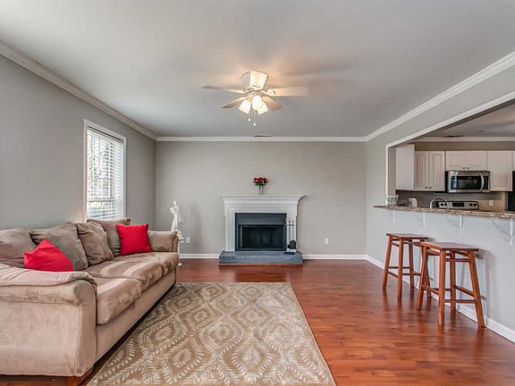 All new stainless steel appliances. Laminate wood flooring throughout. Tile in kitchen and half bath. Fresh paint. Large great room with fireplace and eat-in bar. Upstairs has a large rec/entertainment room. Master bedroom has vaulted ceilings. Two additional large bedrooms upstairs with remodeled full bath. Large private back yard. Storage unit.
