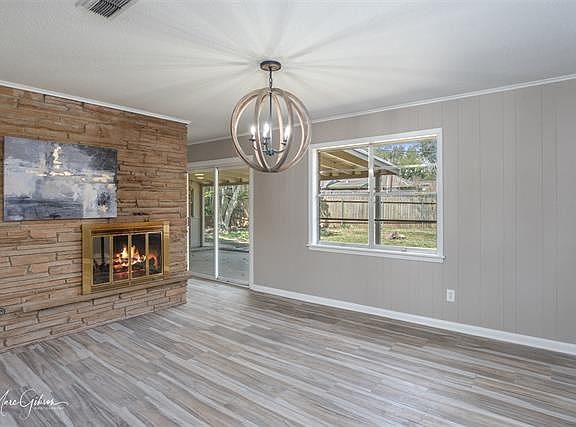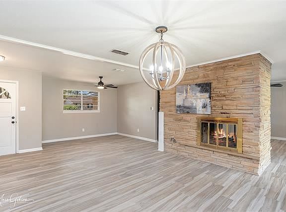 COMPLETE REMODEL!! Brand new roof. Home opens to an amazing double sided fireplace, a perfect centerpiece to this home! Beautiful new tile and carpet throughout. New granite counter tops with bar seating in the kitchen. New light fixtures. New plumbing fixtures and new paint inside and outside! The laundry room is huge with lots of shelf storage. Additional storage room off the laundry room can also be used as a game room or a play room or just for storage! Large covered back patio and a fully fenced back yard. AGENT OWNER