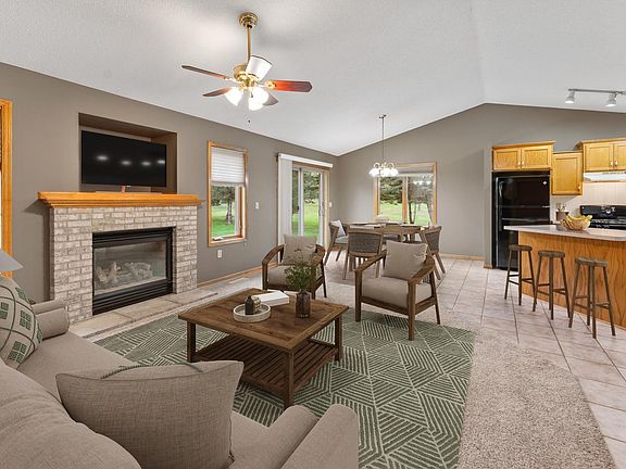 On 1.5 acres! This 2 bedroom, 2 bath home offers easy, one level living with a bright open layout, vaulted ceilings, and a cozy gas fireplace. The spacious kitchen and large attached garage provide plenty of room for daily convenience, plus a large storage room gives you even more space to stay organized. With its durable exterior, quiet setting, and close proximity to town and the lake, this home blends comfort, functionality, and country charm! Move right in and start enjoying the simple, stress free lifestyle you've been looking for!