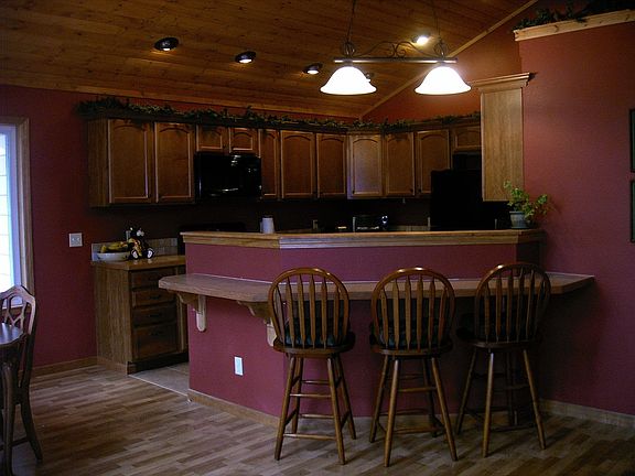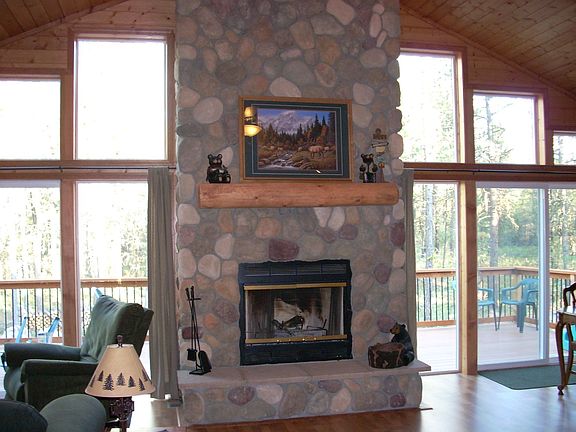 Custom home builder's own home. Solid wood doors, trim, and wood cathedral ceiling in great room. Stunning floor to ceiling stone fireplace. Lots of windows looking out to the trees from the living room/great room area. Plenty of storage and a fully finished walkout daylight basement.