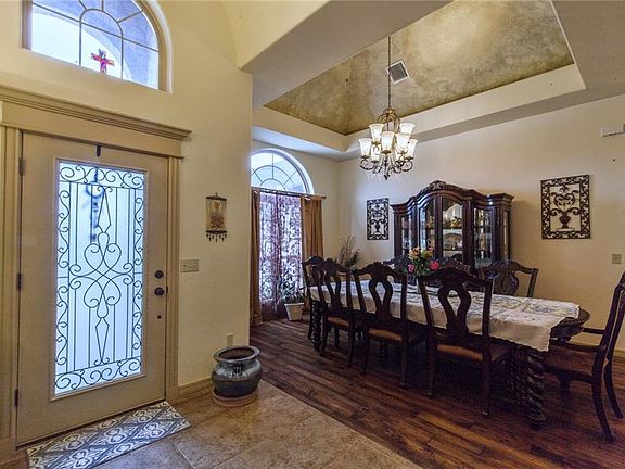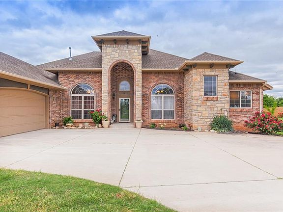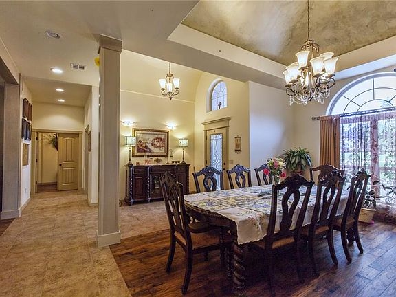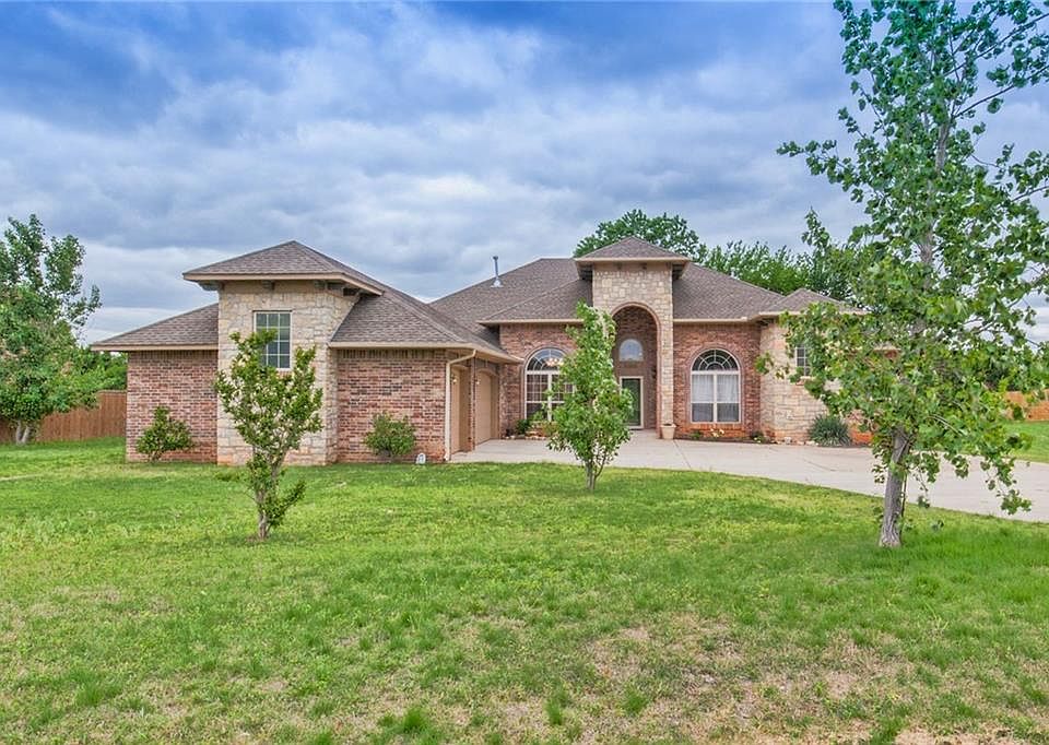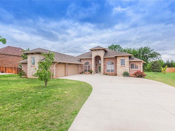 1+ ACRE, PRIVATE TREED LOT Gorgeous home! Open concept and great for entertaining. Kitchen has tons of cabinetry with an over-sized island, and lots of counter space; also includes a walk in pantry, farm sink, and water softener. Home has extra storage throughout. Bar off of kitchen area, huge master suite with large sitting area, access to patio, master closet has built in chests, linen closet, large walk-in shower with whirlpool tub to relax, tank-less hot water heater, and a 6 person upright storm shelter. There is a small creek on back of property that has a couple on inches of water that flows through. Great cul-de-sac location with no through traffic !