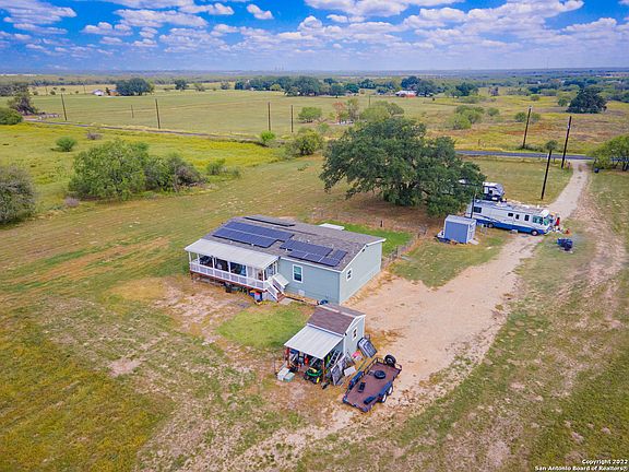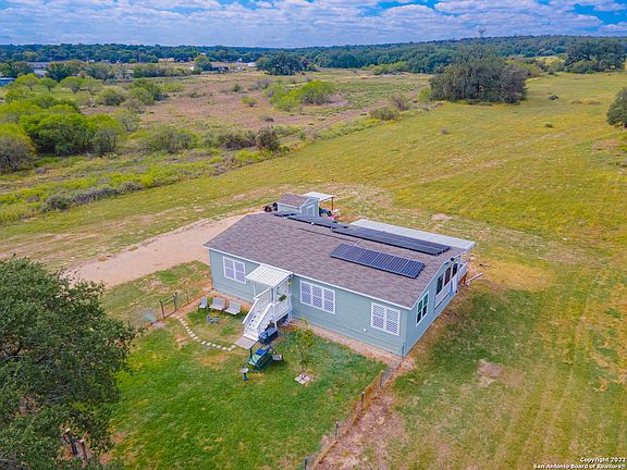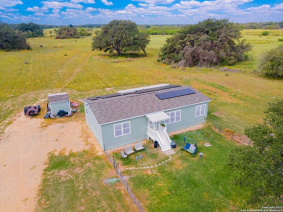 Live on the edge of the city,10 mins from major stores on this gorgeous unrestricted property on 6.83 acres with large Oak trees throughout! No deed restrictions, zoned for farm and agriculture. NO HOA! 2019 Modular home features 2 bedroom, 2 bath, 1410 SQFT, SOLAR PANELS, and sits on a pier and beam foundation. It offers a office/sunroom that can be easily converted into a 3rd bedroom with a sliding door exiting to the covered wrap around porch, large kitchen with sliding door to wrap around porch. The mas