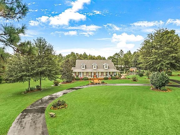 Upon arrival, guests are greeted by an inviting asphalt driveway leading to an elegant circle drive, surrounded by towering pines and ambient lighting, setting the tone for the grandeur that awaits. A stunning custom 12-foot wrought iron gate adorned with solar lighting opens to reveal a picturesque landscape featuring manicured flower beds with automatic watering systems by Rain Bird. The exterior of the home is adorned with old Mexico brick resting upon a custom-designed foundation with concrete pilings reaching 22-25 feet deep, fortified with highway rebar and panels for utmost durability and stability. Step inside, where the interiors exude sophistication and warmth. French doors from the 1940s grace the dining room. The kitchen is a culinary enthusiast's dream, boasting double ovens, whirlpool refrigerator, and custom solid oak cabinets, all framed by exquisite granite counters. Entertainment is seamlessly fused into the home with a custom entertainment center in the den, complete with an Onkyo sound system. Outside, an open-air kitchen beckons, equipped with a refrigerator, sink, propane cooktop, offering the perfect setting for alfresco dining and gatherings. Relaxation awaits in the master suite, featuring a rejuvenating jacuzzi tub and access to an enclosed sunroom with its own AC heating system and custom tile flooring. Additional amenities include a Generac 36-kilowatt whole house generator and hot spa ensuring comfort and convenience year-round. The outdoor oasis is equally impressive, with an above-ground pool and three pergolas providing shade and ambiance. This exceptional estate offers a rare opportunity to experience luxurious country living at its finest.