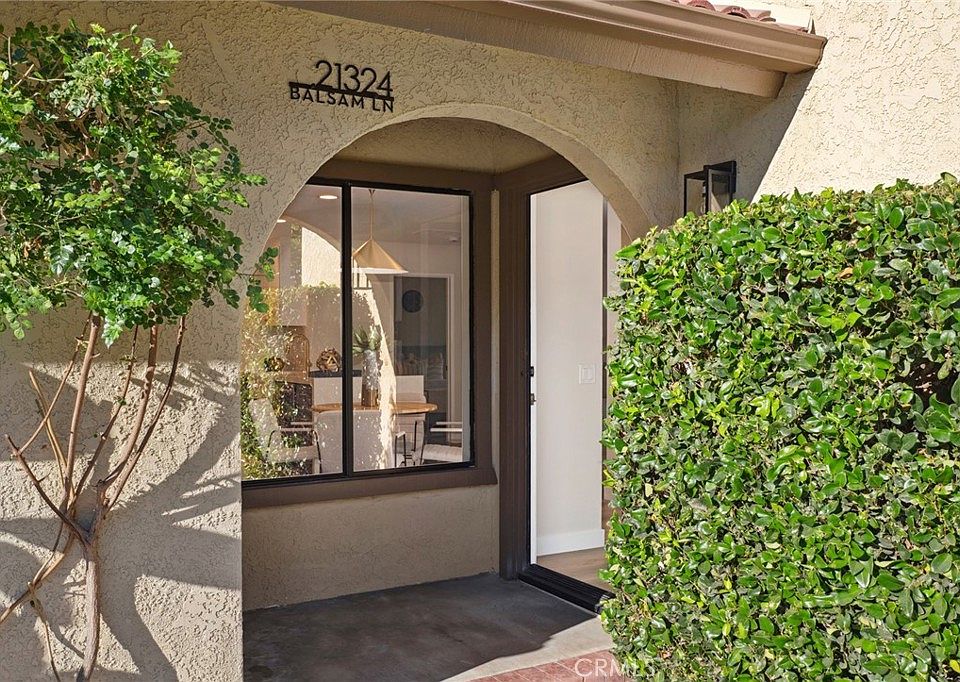Welcome to this beautifully remodeled single-level condo in the highly sought-after Tierra Vista community of Lake Forest. This lower corner home offers 2 bedrooms, 2 bathrooms, and 1,022 sq. ft. of stylish living space designed for both comfort and functionality. Step through the landscaped walkway into a bright and inviting interior featuring luxury vinyl flooring, recessed lighting, and an open-concept layout. The dining area is accented by a brass bell pendant, while the gourmet kitchen showcases stainless steel appliances, a farmhouse sink, quartz countertops with a waterfall edge, breakfast bar seating, and elegant brass fixtures. The spacious living room flows seamlessly to the private covered patio and backyard through sliding glass doors—perfect for relaxing or entertaining. The primary suite features a walk-in closet, sliding glass doors with backyard access, and a remodeled ensuite bathroom with a shower-tub combo, frameless LED mirror, and modern vanity. A secondary bedroom, full bathroom, and dedicated laundry room with built-ins complete the home’s interior. Additional highlights include direct access to a private garage with driveway parking, central air conditioning, and thoughtful upgrades throughout. Residents of Tierra Vista enjoy resort-style amenities including a sparkling pool, spa, and lush greenbelts, all while being conveniently located near shopping, dining, and major freeways. Don’t miss this move-in ready gem that truly has it all.