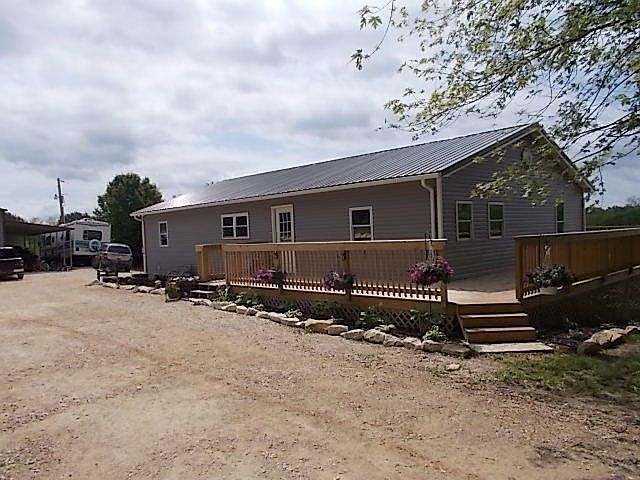 This open concept rural property has been totally updated with new windows, siding, roof, paint , cabinets, countertops and flooring. It includes 2 family rooms, 5 bedrooms, 2 baths with a third stubbed in and ready to finish in the spacious walkout basement. It's situated on partially fenced 9 acres with blacktop frontage and has a 40x40 heated shop/garage that has been spray foam insulated for efficiency .