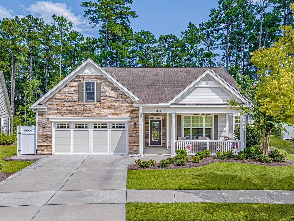 Enjoy incredible elegance at 2133 Birchwood Circle located in the Active Coastal Lifestyle community of Cresswind at The Market Common. This immaculate 4BR/3.5BA Natural Gas Hickory Floorplan on it's lush and private homesite is sure to impress. Eye-catching façade of Stacked Stone and Hardie Board welcome you to an extended and deep covered Front Porch with ceiling fan.  Upon entering this fine residence, you will admire the gorgeous porcelain wood-look tile that flows throughout the first level living areas and the impressive triple moldings that crown the Grand Entry, Living Area, Dining Room and Primary Bedroom. An upgraded trim package also includes wainscoting in the Formal Dining Room. This coveted Hickory Floorplan is renowned for its open design and spacious Grand Family Room that measures 18'8x17'8 with a Gas Fireplace.  Any cook will relish in this amazing Gourmet Kitchen offering a Double Oven, 4 Burner Gas Cooktop, SS Appliances, Quartz Countertops and Work Island with room for seating. Also included is a  Butlers Pantry & Pantry Closet, cabinet niche for displaying plates, lower cabinets have pullouts, Reverse Osmosis Fountain at sink and a large Breakfast Nook. A pass through from the Kitchen to the Formal Dining Room provides easy entertainment opportunities and accesses the Butlers Pantry that could double as a coffee bar or storage for fine collectibles. Enjoy the Carolina Room located just off the main living area that accesses an awesome enclosed All Seasons Porch with glass windows, custom shades and tiled flooring. The fenced backyard is huge and offers two cement patios giving many options for outdoor furniture arrangements or grilling station design. The Owner's Suite is fit for royalty with it's sizable dimensions of 18'4x14'0, Trey Ceiling with fan, cool coastal color and double door entry into the Spa-Like Ensuite. The turned tile flooring is lovely in this Grand Bath with Double Vanity that is graced with many drawers and cabinetry for storage. Also, a Linen Closet, Garden Tub, and separate glass enclosed Tiled Shower with built in bench and Ceiling Fan, but the enormous Walk-In Custom Wardrobe maybe the cherry on top. Two other generous Bedrooms at the front of the home share a large Jack and Jill bath with zero entry shower and also present Custom Closets. A convenient Powder Room is located just off the entry.   The good-sized Laundry Room has overhead cabinetry and is located just off the garage entry area. Upstairs, the 4th Bedroom or Bonus Room is perfect for extended guests or a Media Room which offers a spacious closet, full bath, and entry into the floored attic area and HVAC air handler.  An oversized 2 Car garage with high end epoxy flooring has unlimited storage space and the Kinetico whole house water softener system. More upgrades to convey with this fine home include, custom window treatments throughout, app controlled lighting with walk-away switches, outside garbage can enclosure, whole home surge protector installed in the electric panel, and all appliances. Cresswind has spectacular amenities with a resort-like Club House, a large Fitness Center, expansive Pool, a Hot Tub, Tennis & Pickleball Courts and scheduled events.  The HOA includes irrigation from the community well (not on your water bill) lawn maintenance that covers mowing front and rear lawns with bush trimming 2x yrly, basic security system monitoring, trash and recycling pickup, monthly discount to your cable bill, and the incredible amenities.  Market Common has everything you need offering dining, shopping, a movie theater, grocery stores, medical center, walking trails, parks & a large dog park with so much more! Cresswind is Golf Cart friendly and located just minutes from the beach and Myrtle Beach State Park! Don't miss out on this beautiful home. Schedule your showing today!