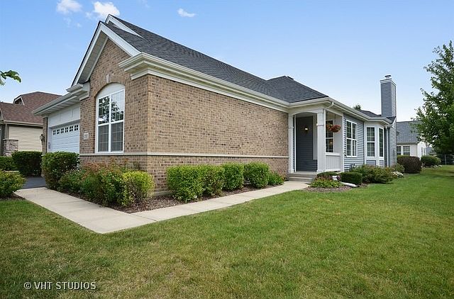 Expanded "Greenbriar" ranch design WITH a FULL FINISHED basement in popular Carillon at Stonegate! The interior of this spacious home has just been freshly professionally painted & the hardwood floors just refinished. Enjoy a gourmet kitchen w/granite & SS appliances open to a comfortable family room. 2 ensuite bedrooms on the main level-including the private master suite. There is also a versatile den/study & 1st floor laundry center. The custom finished bsmt offers a wide open rec/game room, a 3rd BR, 3rd full bath & plenty of unfinished storage space. This "move in ready" home has a gorgeous two-level paver patio w/a water feature & custom low voltage lighting. Also of note-new roof & new siding in 2014. Other convenience features & upgrades-a security system & a 9 station irrigation system & hypo-allergenic air cleaning system. Enjoy this active 55+ community with a clubhouse, pool, tennis & regular social activities. Close to the train/I-88/shopping!