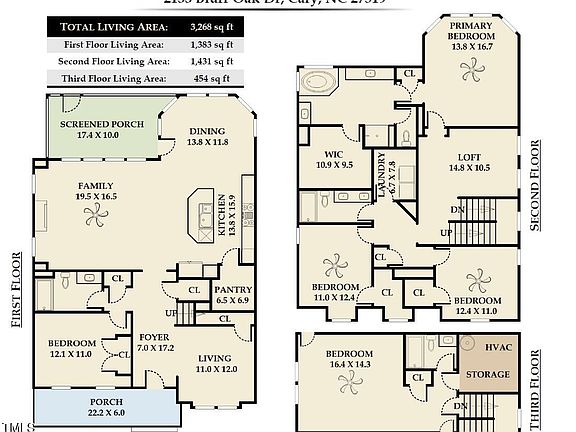 Immaculate North-Facing 5-Bedroom, 4-Bath Home in West Cary's Amberly Community with Resort-Style Amenities This stunning home features a 2-car garage, hardwood floors throughout the main level, and new carpet on the second floor. Freshly painted throughout, it offers an inviting layout perfect for modern living. The first floor boasts a spacious kitchen with a center island overlooking the family room with a cozy fireplace, a breakfast area, a formal dining room, and a versatile flex/office space. The second floor includes an open loft, a huge master suite with bay windows, a luxury master bath with a garden tub, walk-in shower, dual vanities, and a large walk-in closet. Two additional bedrooms, a full bath, and a convenient laundry room complete this level. On the third floor, you'll find a large game/media room with full bath access, which can also serve as a fifth bedroom. Step outside to enjoy the screened porch and flat backyard with brand new sod and landscaping—perfect for relaxation and entertainment. Amberly Community offers resort-style amenities, including a large swimming pool with slides, a fitness gym, a playground, a clubhouse, soccer field, indoor basketball court, and walking trails. Conveniently located near RTP, the future Apple complex, and offering easy access to shopping, dining, RDU Airport, and I-540, this home won't last long!