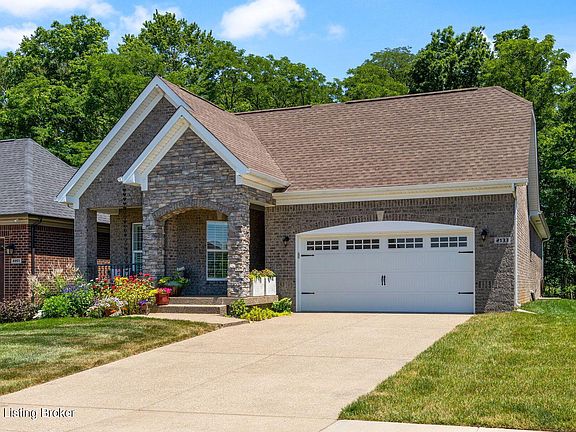 Nestled on a gorgeous lot, this home offers easy living and is in ''mint condition''! This lovely garden home has upgrades galore and is located on a premium lot that backs up to trees offering full privacy. A spacious foyer greets you as you enter this open floor concept home. The living room includes a stunning wood decor ceiling, gas fireplace and custom built-in bookshelves. Off the kitchen is a covered porch and a maintenance free pergola that overlooks the tree lined backyard, a beautiful outdoor living space that offers a peaceful view. The kitchen has top of the line stainless steel appliances, including a gas cooktop and a large island with waterfall Quartz countertops. The office is complete with custom shelving and a built-in desk. The primary suite is conveniently located on the first floor with an upgraded en-suite bath and walk-in closet. The first floor also features a second bedroom with a full bathroom. The laundry room and drop zone are located off of the attached 2-car garage. The finished basement has a family room, a bedroom and a full bathroom, as well as plenty of storage space. The home is in "mint condition" and move-in ready! Beautiful plantation shutters provide privacy and style. The exterior grounds are taken care of by the HOA providing a truly maintenance free property. The Villas of Floyds Fork are conveniently located close to shops, restaurants and easy access to the highways. Make this House your new Home! Please see the full list of upgrades under documents.