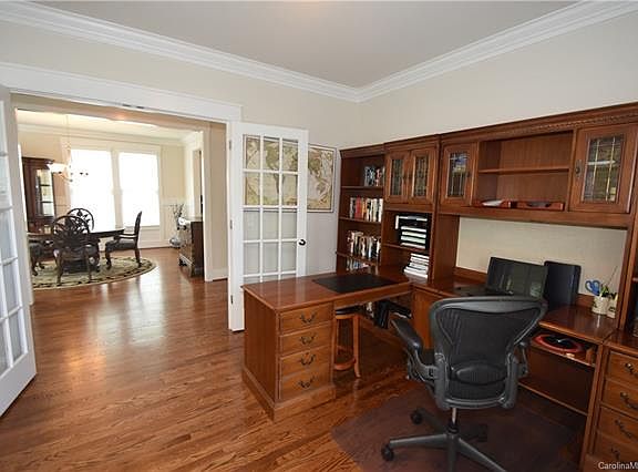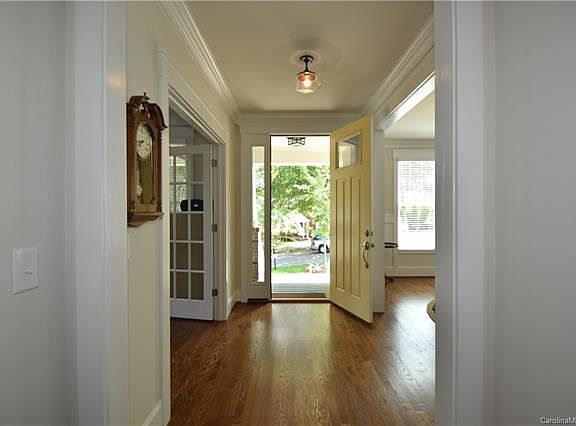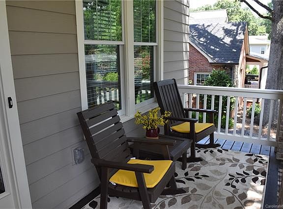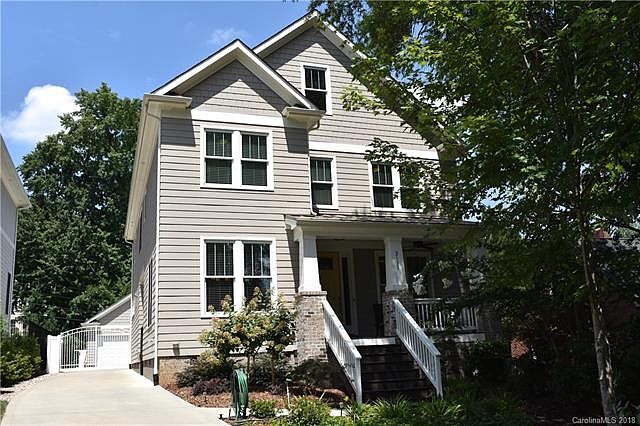 This beautiful 4 BR/3.5 BA home with detached 2-car garage, built in 2014, sits tranquilly in the Midwood neighborhood in Charlotte, NC, on a dead-end street. Living is never better than entertaining in this private setting. Home is well appointed w/granite counters, SS apps, an Electrolux SS gas cooktop, designer tile in kitchen & quartz or granite baths. The moldings, hand-sanded H/W flooring, recessed lighting & light fixtures are beautiful! Has an inviting combination of kitchen opening to the family room w/patio doors that lead to the covered rear porch that overlooks nature! Main level has a rocking chair front porch, study, dining room, butler pantry, drop zone bench at side door entrance & 2 w/in pantries & storage rooms. Upstairs, the Master has a tray ceiling, ensuite boasts a relaxing Jacuzzi tub w/separate tile walk-in shower, beautiful cabinetry w/double sinks set in a granite countertop, 2 w/in closets. 3 additional BRs, one that is ensuite, and Laundry Room. Volunt. HOA.
