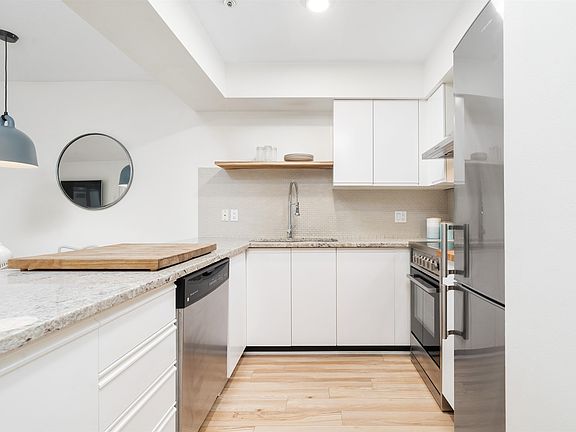 Ideal for the young professional, welcome to HARBOURGATE: a 4 level primarily owner occupied building in the heart of the East Village. FULLY UPGRADED ENVELOPE with rainscreen and thermal windows (2021). THE SUITE: Top level, north facing (quiet side) 1 BDRM + FLEX with 690 sq.ft. to spread out, plus a new hot water tank, updated kitchen & bathroom. THE PERKS: Low strata fees, Gas Fireplace (included in strata fees), heated bathroom floors, & new appliances. Large in suite storage, plus 1 Secured Underground Parking. 1 Pet Allowed. AMENITIES: Shared roof top deck, and bike room. THE NEIGHBOURHOOD: trendy brewery district with restaurants, parks and bike paths and quick access to downtown and main arteries. Move-in Ready!