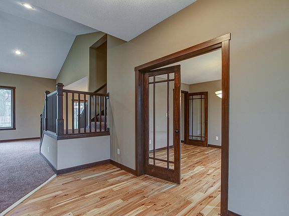 Tucked away on a quiet cul de sac within walking distance to Century High School with a wooded back drop. Custom open with open layout. Spacious family room features fireplace with stacked stone, vaulted ceilings and recessed lighting. Custom kitchen with alder cabinets, tiled back splash, granite tops, pendant lighting and rustic hickory hardwoods. Main floor office/dining room with french doors and main floor laundry/mudroom. Upper story has four large bedrooms, full bath with tiled floors and a spacious master suite with large walk in closet, walk in tiled shower, dual sinks and tiled floors. Beautiful location surrounded by upper end homes.