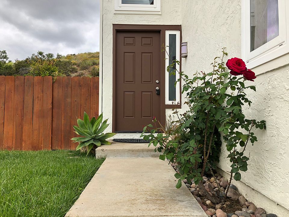 Updated and move-in ready 1,294 sqft two-story Townhouse in the Cottonwood Meadows neighborhood of Rancho San Diego. This 3 bedroom, 2.5 bath property features porcelain, ceramic, and slate tile throughout, as well as new carpet/tempurpedic pad in all bedrooms. Features and recent maintenance include paint inside and out, tuned and serviced HVAC/AC system, steam-conditioned floors and bathrooms, and a two-car garage/workspace with voluminous storage cabinets. The high-end renovation in 2008 of the entire kitchen, all baths, landscaping, and custom welded banister give an ultra-modern but cozy feel. The spaciously updated kitchen with granite countertops and island opens through French doors to a lush backyard and zen garden, all nestled at the base of an expansive, undeveloped hillside covered with native California plants and wildlife. The integrated cabinetry and custom closet system in the master bedroom have a modern, open-concept design, matching the feel of the walk-in shower and its slate black tile. A huge second story deck leads out from the guest bedroom’s sliding glass doors for pleasant sunset and hillside viewings above this quiet cul-de-sac neighborhood. The wonderfully simple curb appeal is a subtle nod to all the valuable amenities and thoughtful touches in this property. Excellent schools, excellent access to everything. Coming soon, so move quickly!
