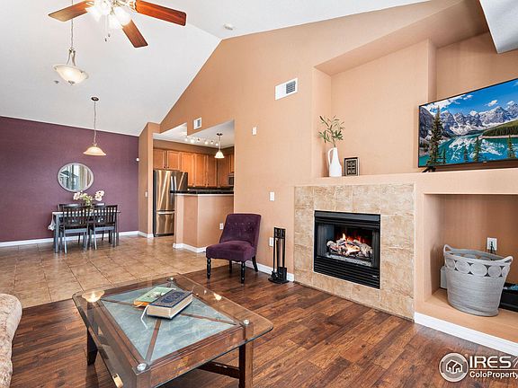 Welcome to your next home! Enter and find an open floor plan that is brightened with lots of natural light and mountain views that will never get old. The comfortable living room features a fireplace, vaulted ceiling and brand-new floors that extend throughout the home. A spacious kitchen has ample cabinet storage, 3 sides of countertop space and stainless steel appliances. Down the hall you'll find the primary bedroom with a large walk-in closet is tucked away and again features tremendous views. The second bedroom has built-in shelving that adds a great touch to the room. Washer/Dryer is conveniently located just off the bedrooms. Spend evenings on the West-facing Balcony taking in the sunset as it falls behind the Rocky Mountains. Extra storage off the balcony. Private pool is located just to the East of the building. New Glass has been put in sliding glass door. Located close to numerous walking/biking paths and the newest City of Fort Collins park! Come take a look and see if owning this unit is right for you!