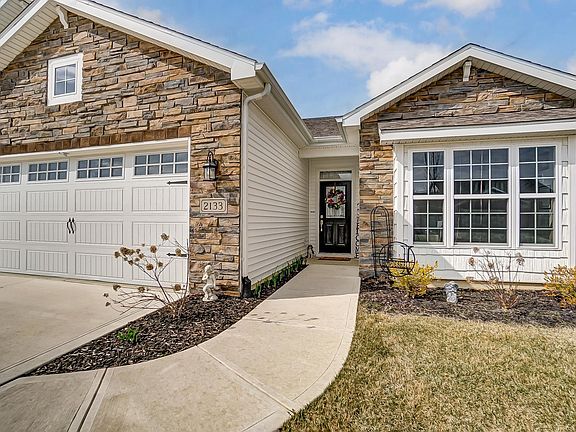 Your dream home awaits! Convenience, comfort, and a touch of class at 2133 Lawsons Cove, Fort Wayne IN, a 2 year old Majestic Homes-built, ranch-style home with the fantastic 1,945sqft chardonnay floor plan in Cottages of Catania. Feeling overwhelmed with everything life throws at you? Balancing work, family, and personal time can be a circus act. But what if your home could help simplify things? This home can be your sanctuary from the hustle and bustle. With 3 bedrooms, 2 bathrooms and a 3 car garage, this abode is not just a house, it's a lifestyle. The master bedroom, with its trey ceiling and expansive walk-in closet, offers a private retreat. The master bathroom comes equipped with ADA height toilets, dual sinks, and a full tile shower - because we all deserve a bit of luxury, right? The heart of the home, the kitchen, boasts quartz countertops, a tile backsplash, and all stainless steel appliances which stay, as does the built-in trash can in the cabinet of course. The dual-sided gas fireplace adds a cozy touch to the living room, and the added carpet provides an extra layer of comfort too. The vaulted ceiling in the kitchen and 9' ceilings throughout add a sense of spaciousness. And let's not forget the floored attic with a pull down ladder for access to extra storage space! The washer, dryer, water softener (owned) and garage racks also stay, making moving in a breeze. The exterior is just as impressive, easy to notice with so much stone on the front elevation. The front yard is irrigated, and the backyard is adorned with a few added trees for additional privacy. The solid pergola on the back patio can also stay and the fence can stay or go. The home comes with a transferable 5-year complete home warranty which has 3 years remaining. And if you're keen on maintaining the yard yourself, the riding mower, self-propelled mower, and snow blower could be negotiated. There could be an opportunity to assume the existing VA loan with a 4.625% interest rate. Ask for more details. 2133 Lawsons Cove is more than just a house, it could be your future home!