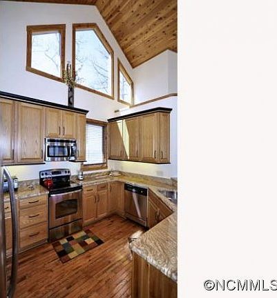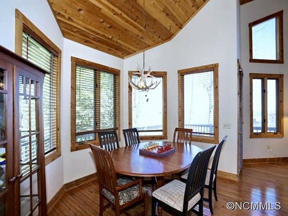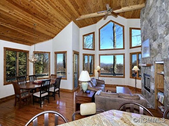 Very roomy cottage with open floor plan with vaulted ceilings in great room, new appliances in the kitchen, granite and breakfast bar. Master bedroom has vaulted ceilings, fireplace and access to deck. Two guest suites are on the upper level with great views and privacy. Located close to parks and amenities at Mountain Air's Village Green. Two car garage with storage. Exterior is rough hewn cedar siding and nicely landscaped.