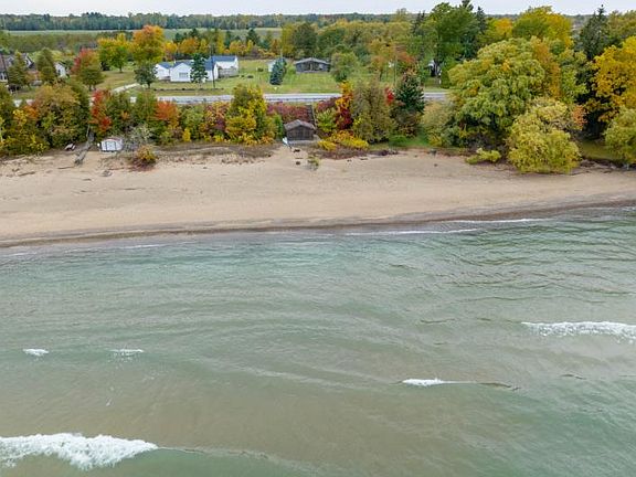 GOLD COAST BEACH!!! Amazing Waterfront bungalow on 50 feet of prime Lake Huron shoreline. This 2 bedroom, 1.5 bath open concept home boasts a stunning sandy, walkable beach!. Great views of the lake from the living, dining, and kitchen. Cathedral ceilings, gas fireplace in living area, and a slate tiled bath to name a few details. French doors lead from both bedrooms onto your private back deck. Take in the lake views from your covered front porch or watch the sunset from your private backyard deck. Amazing cabana/beach shed (12'x16') on the sandy beach complete with a large beachside deck! Bonus: Many/most of the interior furnishings included, plus many shed items, and 2 kayaks! Nice sized yard complete with storage shed! Lake-life doesn't get any better!!!