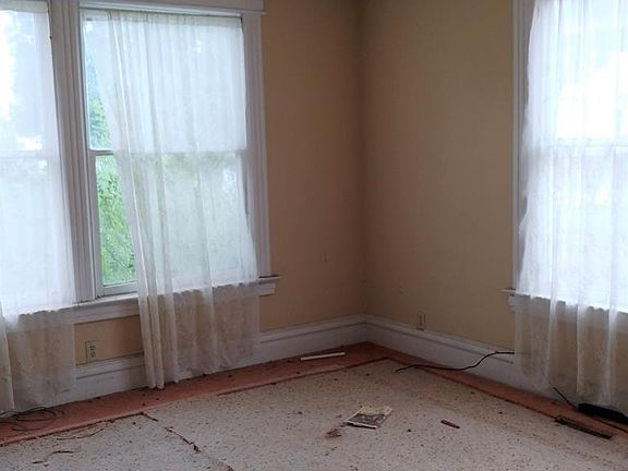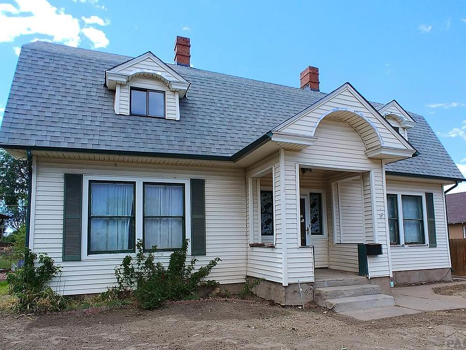 Great potential in this charming Dutch Colonial style home. Looking for a fix or flip project? Cute curb appeal with covered front porch and dormer windows. Main floor has living room, dining room and kitchen, with laundry room on back enclosed porch. 2 Large bedrooms upstairs with a bathroom in between. 1 car detached garage with alley access. Property sold "AS IS". A diamond in the rough, formal entryway with wood staircase, not livable as brick fireplace in living room needs work, non-functioning bath upstairs, no furnace, no water heater.