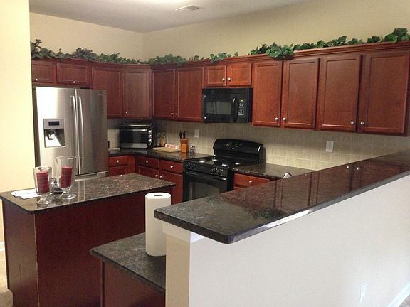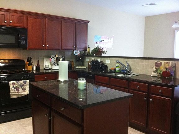 Perfect floor plan with tons of windows and light. Main floor features two story foyer and family room, spacious formal dinning room, a large bedroom and a full bath. granite countertop, cherry cabinet and tile backsplash in kitchen. Enlarged master bedroom with tray ceilings and tile backsplash master bath, two bedrooms and an additional full bath upstairs. Popular Sterling floor plan. Biggest floor plan in the subdivision. Fenced backyard with patio. Tenant pay all utilities and lawn care except thrash pickup
