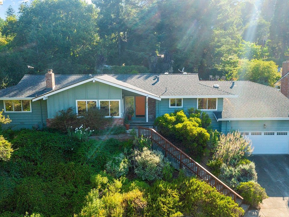 On a quarter acre, this delightful single-story 1963 home with a sprawling floor plan will capture your heart. Perched above street level, the home feels private and remote. Beyond the gracious entry foyer, a welcoming living room showcases a stunning Midcentury fireplace as well as mountain views from its large picture windows. Fans of ample living space will love the additional living room with a second fireplace and a slider to the expansive and verdant back yard with potential ADU possibilities. With two large tiers and multiple areas for playing, gardening, and entertaining, this yard will wow you. The kitchen and adjacent breakfast nook offer views of the hills above Montclair Village, and the formal dining room has a sliding door that opens to the yard. Three bedrooms—one with an ensuite bathroom—offer room for sleeping, working, and hosting guests. Don't miss the 2-car garage with storage on the ground level and a workshop loft above, plus interior access to the home. A laundry room with a pet door to the yard offers utility and additional storage space. With outstanding access to the myriad amenities of Montclair Village and proximity to Highways 13/24, this special property checks the boxes.