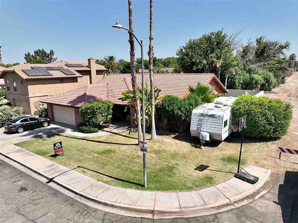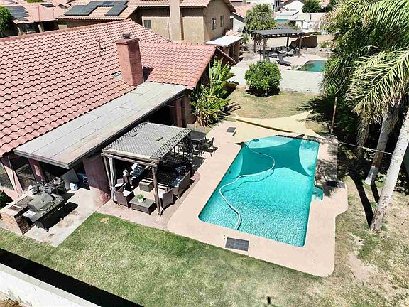 Country Meadows corner site is home to this 3BR/Den or 4BR Pool Home in highly desired area of Yuma. Laminate flooring throughout, formal living/dining plus family room with fireplace adjoins kitchen and nook. Lush landscaping front and back on this corner site leads to a private south facing back yard oasis with inground pool with sail shade, covered patio, gazebo, and built-in charcoal grill. Why leave home when all you need is right here?