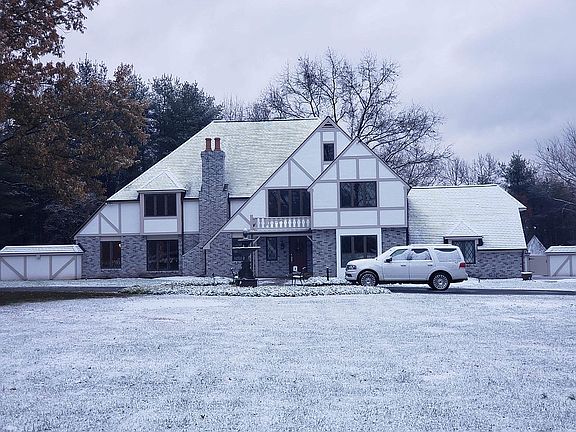 Majestically sited along a circular drive you will find this custom-built English Tudor. This storybook setting is nestled on 3.25 acres with picturesque water views. The grand two-story entrance hall welcomes you to this spectacular 7,200+ SF home. The first floor features a library with built-in bookcases and a walk-in closet office combo, a spacious living room with gas fireplace, formal dining room with built-in china cabinets and door leading to a brick patio. The sun-lit kitchen includes 25'+ of running counter space along with a 4' x 7' island, sub-zero refrigerator, and two self cleaning ovens, one with convection cooking. The extended bay sitting area is warm inviting and exits out to the flagstone terrace. The family room with gas burning fireplace connects to the sun room offering an oasis of calm any time of the year. There are two half baths that complete this space. The second floor consists of a luxurious master suite with gas fireplace, sitting area, balcony, en suite with dual vanity, shower, English soaking tub, and a carefully designed closet/dressing room where you can retreat after a long day. There are three additional well proportioned bedrooms and two more bathrooms also on this level. The basement is finished with a decorative brick fireplace and separate fitness center. There is plenty of basement storage space and a staircase that takes you to the garage. Outside of this home is a peaceful sanctuary with extreme privacy. The flagstone terrace with retractable awning over looks the 40' x 20' heated in-ground pool, an 8' x 10' fish pond and well designed landscaping with mature trees and plantings, complete with an irrigation system. If you are so inclined, you can walk to the back of the property and access the walking trail to the Montgomery County park land. Some additional amenities worth noting are first and second floor laundry areas (indispensable with a pool), an over sized two car garage, 17+ closets (