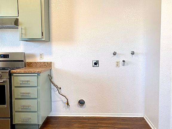 Newly upgraded apartment with fresh paint on all walls. Kitchen cupboards completely sanded and re-painted. Brand new walk-in modern shower with handheld and fixed shower heads. New remote control ceiling fans. Upgraded lighting fixtures. Brand new kitchen stove and hood range. New toilet, blinds and other items throughout the apartment. Area off of kitchen has washer and dryer hookups (washer and dryer are not provided). The apartment includes its own water heater unit. Space for a full size refrigerator (fridge not provided). Wall heater in living room. Very large private fenced in backyard with gate to access the side of the building. Two parking spaces provided for this unit on the side of the building. The owner pays for water and trash. You pay electric and gas. One year lease required.
