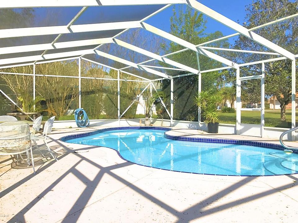 This home boasts a double lot encompassing a half acre with fully fenced in back yard. Enjoy the beautiful Florida weather in your peaceful fully screened in swimming pool. This home has 3 bedrooms, 2 baths, and a converted garage that could be used for a 4th bedroom or office. Conversion only needs an air duct put in to be fully under air, which is quick and inexpensive to do. Perfect house for barbecue's and outdoor entertaining!