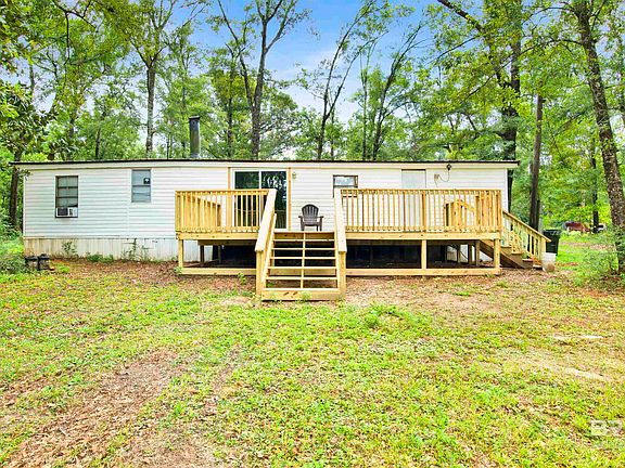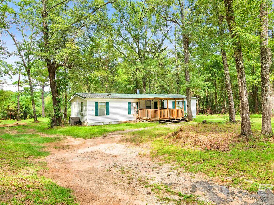 Wake up to the sound of birds, sipping coffee while looking out over your own 3.47 acres, and ending the day with a quiet evening by your fully stocked pond. This 3-bedroom, 2-bath manufactured home gives you the freedom to live life your way- no HOA, no restrictions, just wide open space for your animals, your hobbies, and your dreams. Whether you want a weekend retreat or a full-time homestead, this property is a rare chance to claim your own piece of country living.Well water, new front & back decks, new sliding glass door, all new window units, all appliances, wood burning fireplace in the living room, laundry room inside, outdoor covered storage for tools. Centrally located off of the Baldwin Beach Express in Robertsdale, approximately 24 miles east of Mobile and about 35 miles west of Pensacola, approximately 20 miles from Gulf Shores- this personal retreat can be yours without having to travel miles away. Buyer to verify all information during due diligence.