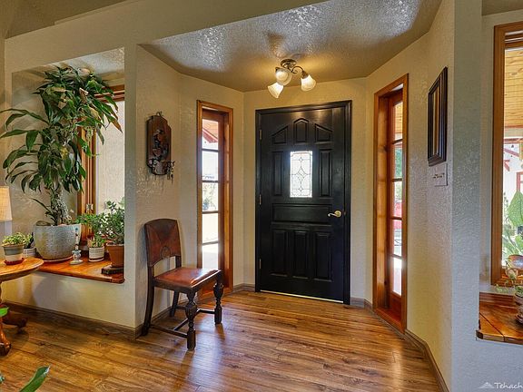 Beautiful, Countryside Oasis with upgraded kitchen, granite countertops, breakfast bar, build in wine rack, ample counter space, floating shelves and stainless steel appliances. Spacious living room offers vaulted ceilings, large bay windows with custom window seats and storage. Light filled dining / den has a wood burning fireplace, vaulted ceiling with wood beams and seating looking into the newly remolded kitchen. Magnificent archways and stunning custom touches are throughout this home. 2 Bedrooms offer attached bathrooms. Walk thru a covered breeze-way to a detached 21 x 17 bonus room with bathroom and private access, ideal for a potential renter, in law suite or family. Enjoy entertaining friends and family on your shaded landscaped patio or take a few steps and unwind under your inspiring, romantic covered retreat. This property has a security gate, out building for extra storage and is fully fenced. Though this neighborhood feels like a vacation destination this home is perfectly located near the heart of downtown Tehachapi and highway access. Room to grow and be creative. This enchanting and timeless home can become your masterpiece! Sellers are using room off the living room as the third bedroom in the main house. Property profile show home as 2097 Sq. Ft. Sellers have included the 21x17 in the Square footage as a total.