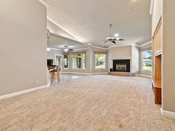 At the heart of the home, you'll find a spacious kitchen with a breakfast bar, ideal for casual dining or entertaining guests. The charm continues with vaulted ceilings, a formal dining room, and a warm, inviting family room featuring a cozy fireplace—perfect for gatherings or quiet evenings in.