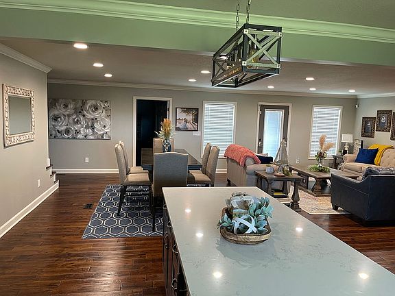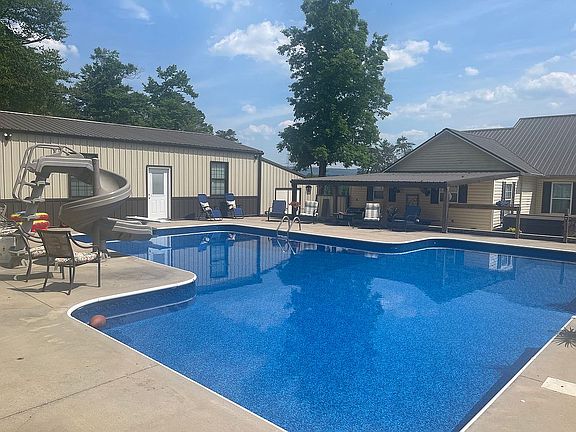 Open spaced kitchen and living room, theater room, 5 bedrooms, 1 of the bedrooms upstairs. Inground pool with slide and diving board with a 27 x 36 pool house.