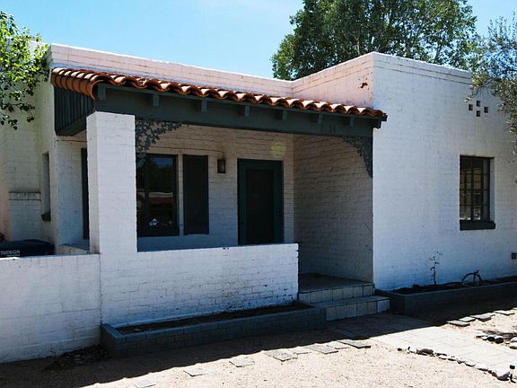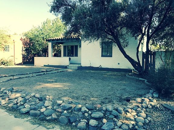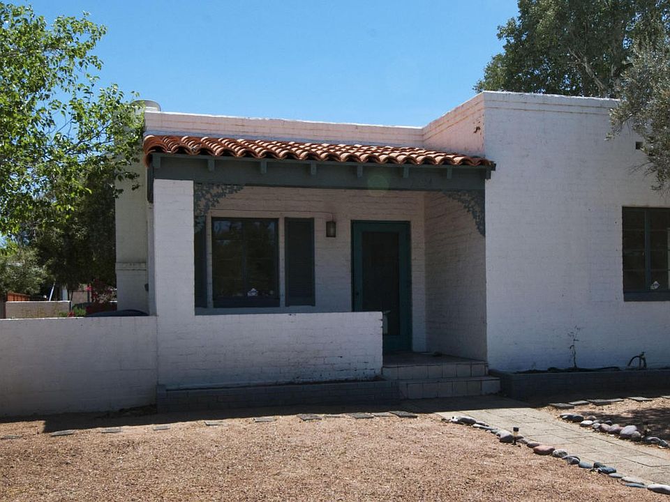 Charming SAM HUGHES neighborhood!! First time on market in years! Southwestern brick bungalow with wonderful large front patio, 2 bedrooms, 1 full bath, large spare room that could be a studio, office, or additional bedroom, etc.! hardwood floors, classic mid century era kitchen & bath, charming living room with fireplace, storage/garage space, central AC, plus (Evaporative cooler, sold ''as is'') large back yard, updated electric (220 amp), only minutes to U of A by foot, WALK to restaurants, beauty salon's, classes, gym! Just painted on the interior, seller has left the exterior to your choice of color to paint Hurry this is a prime location & unique find at this price point! Please all min. 24 hrs. time for seller's to respond to all offers!