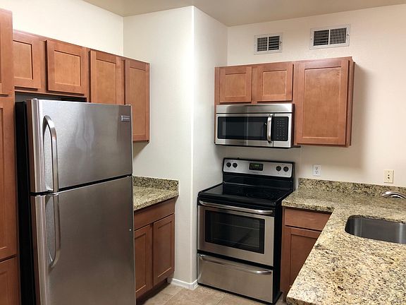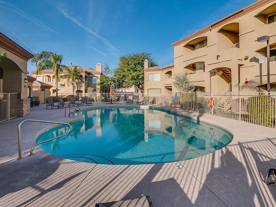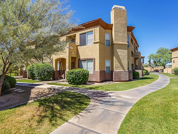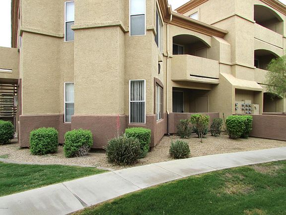 Remodeled 2 bedroom/2 bathroom condo located on the lower level, close to the pool and clubhouse, in the centrally located gated community of Arpeggio. Home has all Frigidaire stainless steel appliances in the kitchen and venetian gold granite counter tops in the kitchen and bathrooms. All flooring, lighting, toilets, sinks, appliances, ceiling fans, AC, water heater, etc are just a few years old. Home comes with a full-size frontloading W&D. Both bedrooms has generous size walk-in closets. This condo is conveniently located near ASU & Hwy 101 & all the shopping & fine dining offered at Tempe Marketplace. VIDEO TOUR: https youtu.be/Ry2xTIS0HxU Water, sewer and trash included.